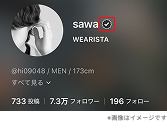 ニックネームの横に黒地のチェックマークが表示されています。